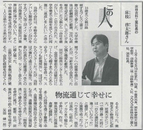 4月7日の「輸送経済」にて、弊社代表取締役社長・床枝 啓太郎のインタビュー記事が掲載されました。
